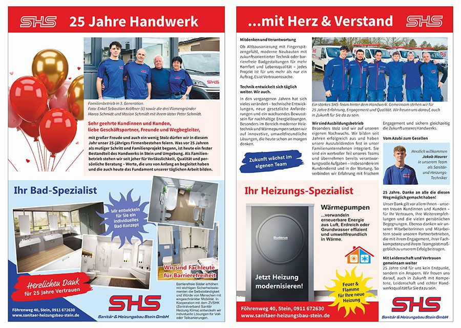 Sprechen Sie uns an: SHS Sanitär & Heizungsbau aus Stein - Ihr Installateur für Heizung und Sanitär im Raum Nürnberg, Fürth und Umgebung.